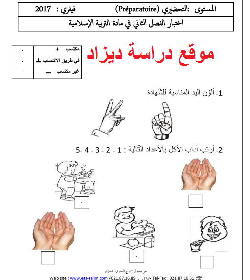 امتحان التربية الاسلامية للقسم التحضيري الفصل الثاني