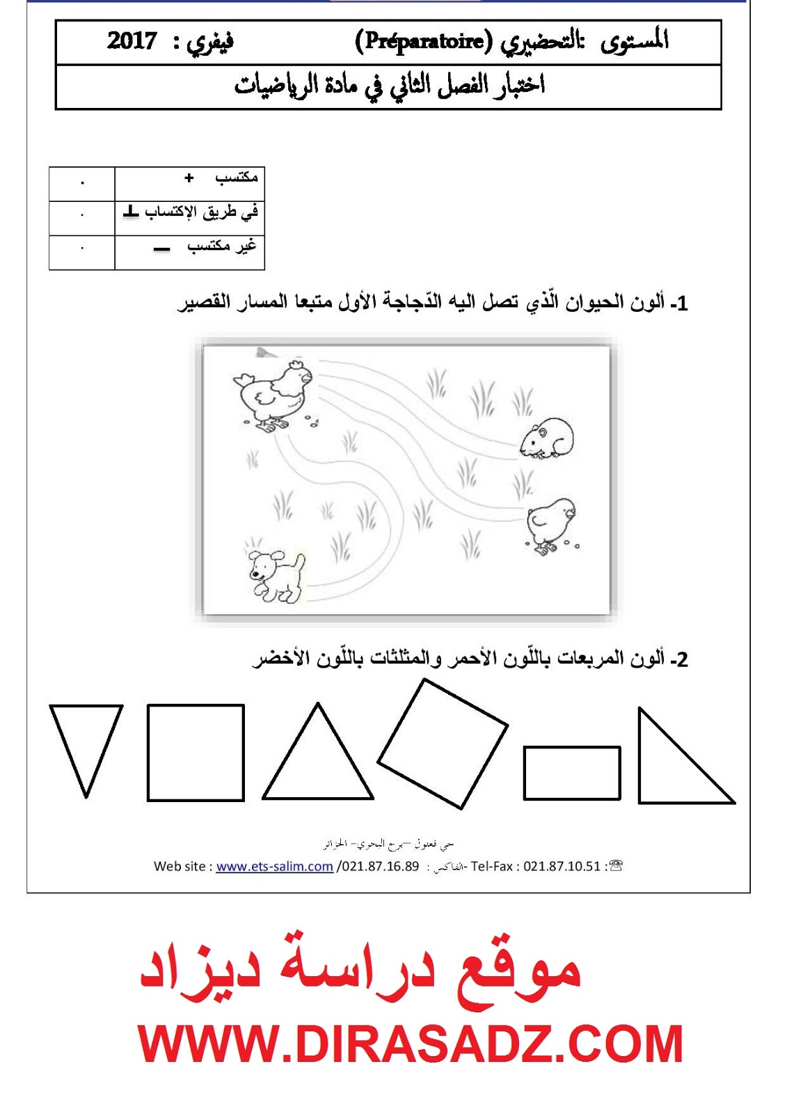 امتحان الرياضيات لقسم التحضيري الفصل الثاني