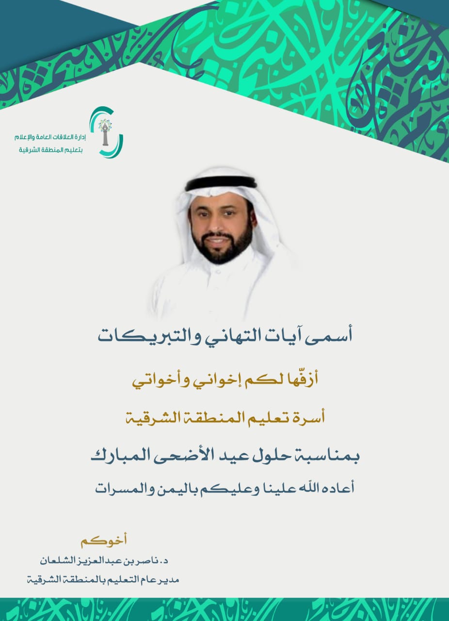 إدارة تعليم الشرقية Na Twitteru مدير عام التعليم الدكتور ناصر الشلعان يهنئ أسرة تعليم المنطقة الشرقية بعيد الأضحى المبارك