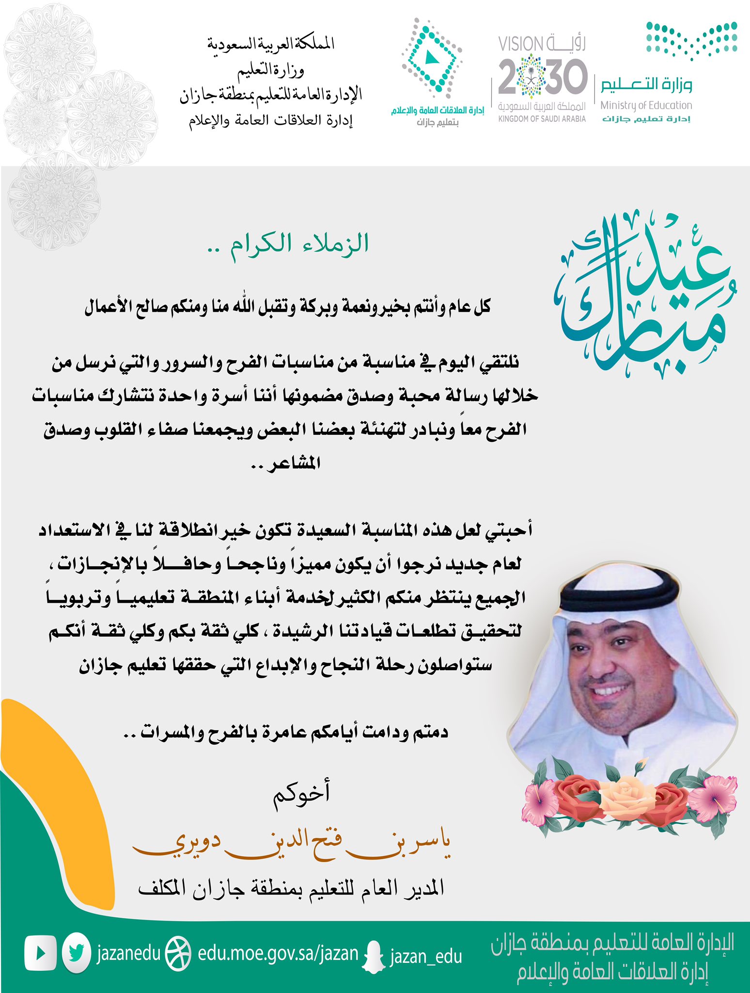 إدارة تعليم جازان Pa Twitter حدث اليوم كلمة مدير عام تعليم جازان المكلف أ ياسر دويري أثناء حفل الإدارة بـ عيد الفطر المبارك