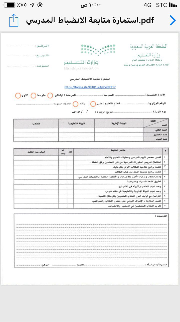 عبدالمحسن الزهراني On Twitter استمارة متابعة الانضباط المدرسي في الاسبوع الخامس عشر مرسل من وزارة التعليم الى ادارات التعليم