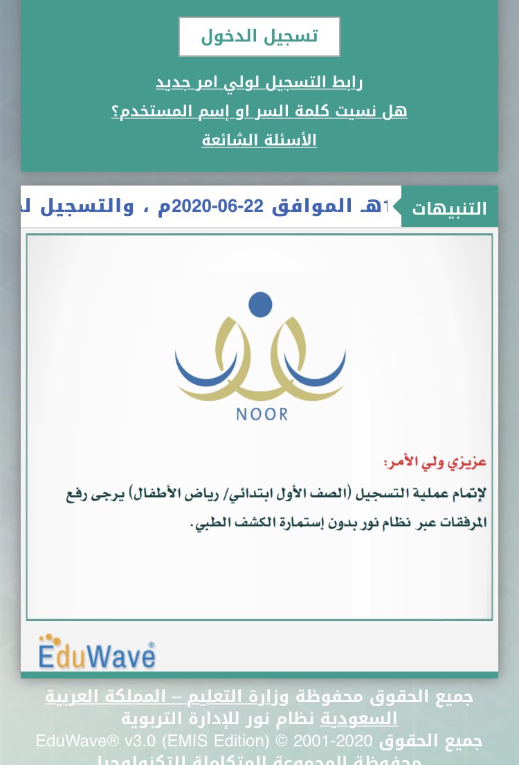 تسجيل الصف الأول الابتدائي 1441 عبر نظام نور 2019 Ien Edu Sa طباعة نموذج الكشف الطبي من نظام نور