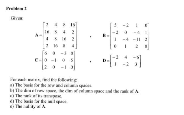 Solved Problem 2 Given 5 2 0 16 8 4 2 4 8 162 2 16 8 4 6 Chegg Com