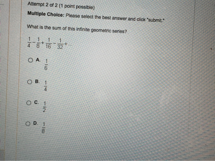Solved What Is The Sum Of This Infinite Geometric Series Chegg Com
