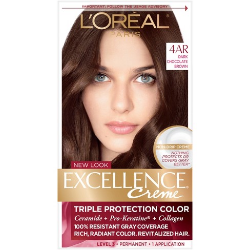 Amazon Com L Oreal Paris Excellence Creme Permanent Hair Color 4 Dark Brown 100 Gray Coverage Hair Dye Pack Of 1 Chemical Hair Dyes Beauty