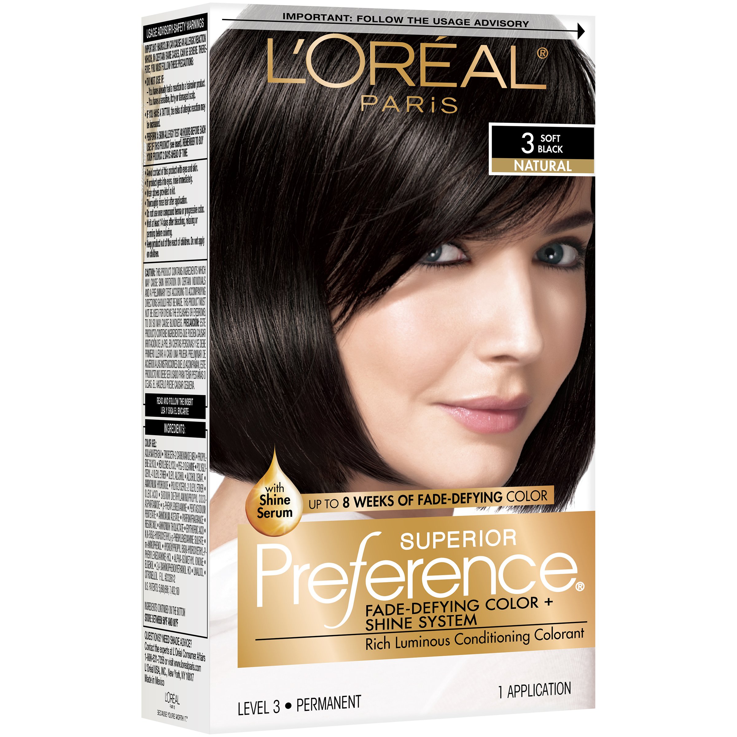 L oreal superior preference 3 soft black natural 1 each pack of 2 23 89. L oreal paris excellence creme permanent hair color 2 0 soft black 100 gray coverage hair dye pack of 1 pack of 1 visit the l oreal paris store 4 5 out of 5 stars 598 ratings. Our range of hair color products are formulated with intense pigments that give you salon quality color vibrance while offering triple care protection so that your hair is nourished from the inside. To fake naturally black hair or restore your already black strands consider using the l oréal paris excellence créme permanent triple protection hair color in soft black.