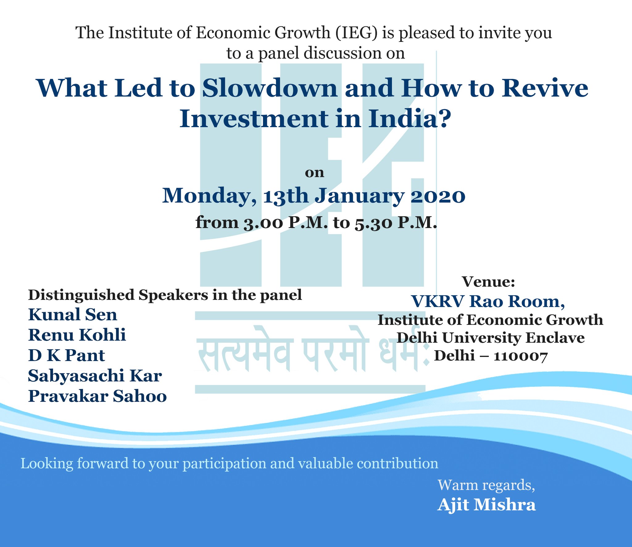 Ieg On Twitter Invitation For A Panel Discussion On What Led To Slowdown And How To Revive Investment In India On Monday January 13 2020 At 3 00 P M In The Vkrv Rao